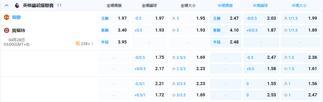 - 這場比賽的「大分」訊號:布倫特福德本季雖是「平局大師」,但他們同時也是著名的「曼聯殺手」,多次利用高效反擊攻破紅魔大門。考量到曼聯強攻、後防不穩的特性,「全場大分」或是「雙方進球(BTTS)」 是目前盤口數據中最被看好的選項。
