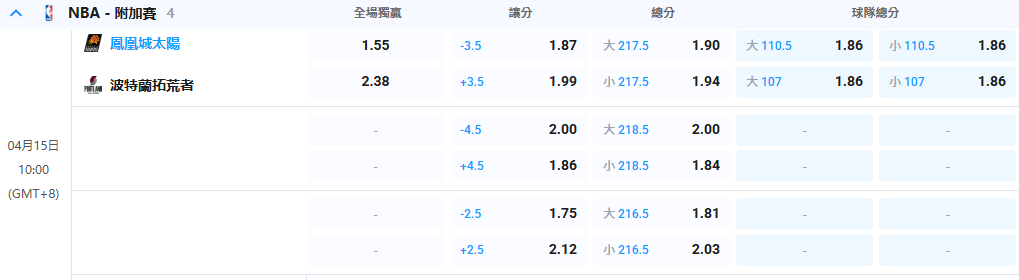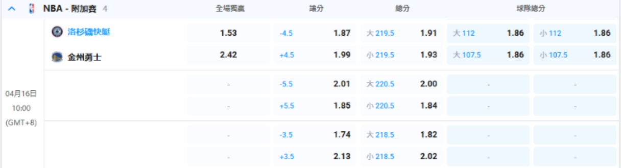 另一場東區重頭戲,76人對戰魔術開出76人「讓1.5分」(賠率1.93),這種極小的讓分代表雙方實力在伯仲之間。考量到魔術隊強悍的防守與76人的球星單打能力,這場建議往219.5的「總分大」方向走(賠率1.87),避開難預測的勝負!西區方面,太陽對戰拓荒者,太陽「讓3.5分」展現了頂級球星碾壓的價值;快艇對勇士開出快艇「讓4.5分」,對於愛玩大小盤與讓分盤的朋友來說,這波盤口真的甜到不行!